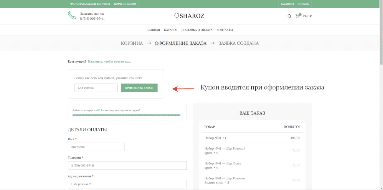 Купон дается за отзыв на картах (яндекс, гугл, 2гис) , отметки аккаунта Sharoz в социальных сетях (в посте или истории).