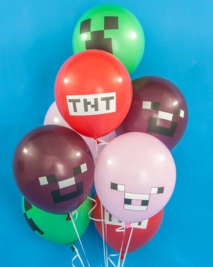 Кроме того, можно добавить различных персонажей игры таких как: Крипер, Стив, Зомби и Скелет. Они могут быть созданы из воздушных шаров и использованы в качестве части декора вечеринки. Подойдут и фольгированные фигуры этих персонажей. Они будут выглядеть более естесственно.